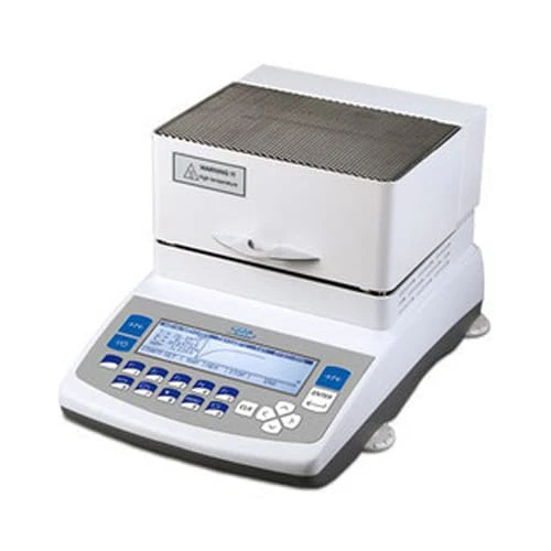 Feuchtebestimmer mit bedienerfreundlichem Grafik-Display und 15 Speicher-plätzen für Trocknungs-programme. Wägebereich bis 110 g
