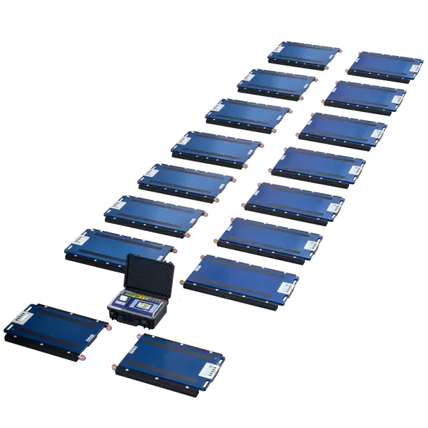 Tragbare Fahrzeugwaagen sind modulare Wägesysteme mit bis zu 16 Wägeplattformen. Dank der gleichzeitigen Verwiegung jedes Fahrzeugrades ist die Wägegenauigkeit vergleichbar mit der einer Brückenwaage. Im Gegensatz zu einer traditionellen Brückenwaage sind sie wesentlich kostengünstiger und ermöglichen die Anzeige des Fahrzeuggleichgewichts sowie einen häufigen Wechsel des Einsatzortes. Sie eignen sich besonders für diejenigen, die eine hohe Genauigkeit benötigen und für das Wiegen jeglicher Fahrzeuge wie LKWs, Flugzeuge und Wohnwagen.