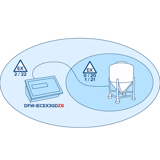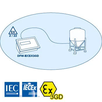 ATEX/IECEx-Kennzeichnung in Ausführung mit eigensicherem Anschluss für Wägezellen: